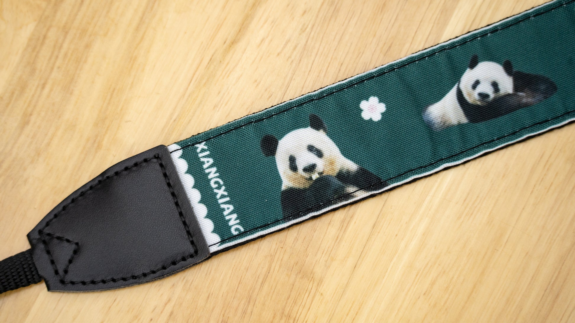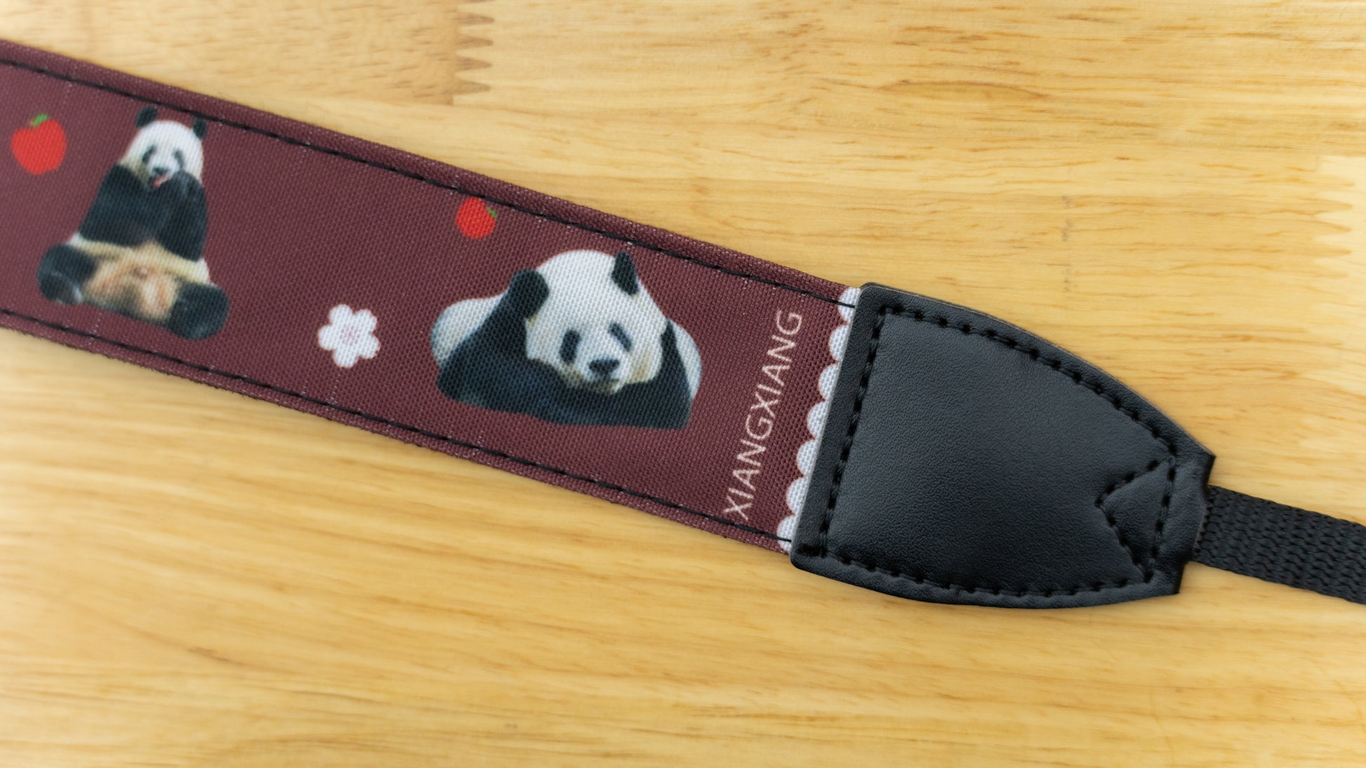 シャンシャンの写真がプリントされた、オリジナルデザインのカメラストラップです。