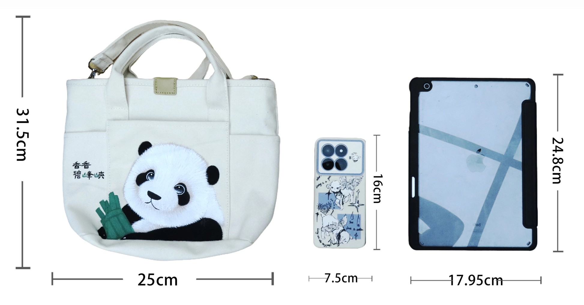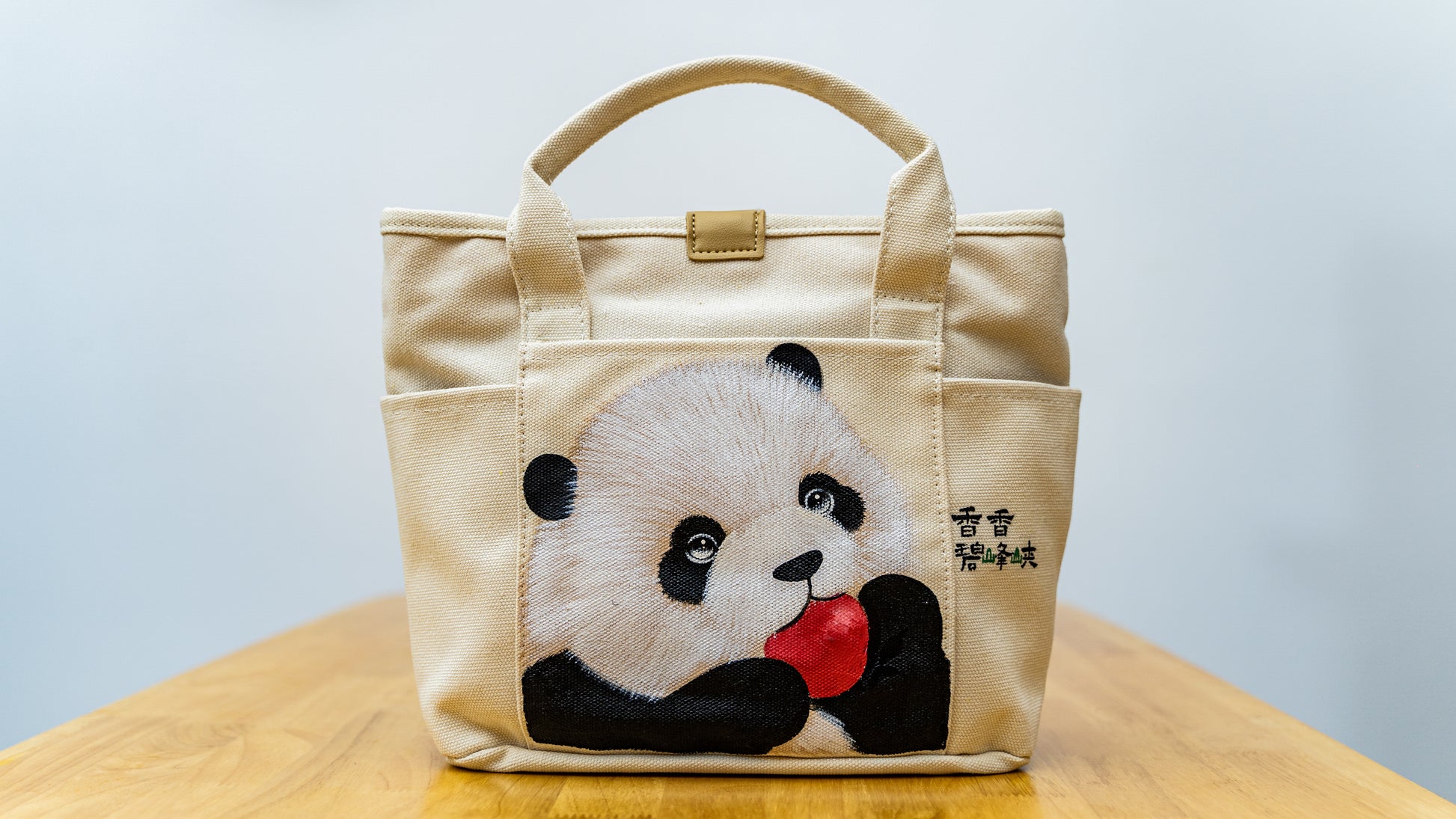 「シャンシャン」リンゴを食べる 手描きバッグ