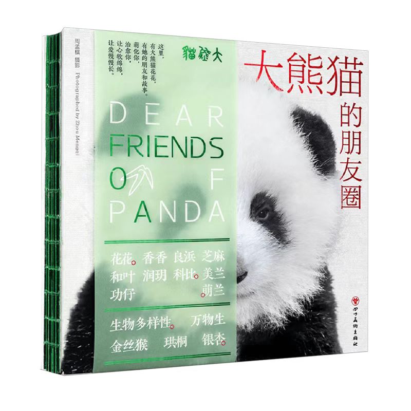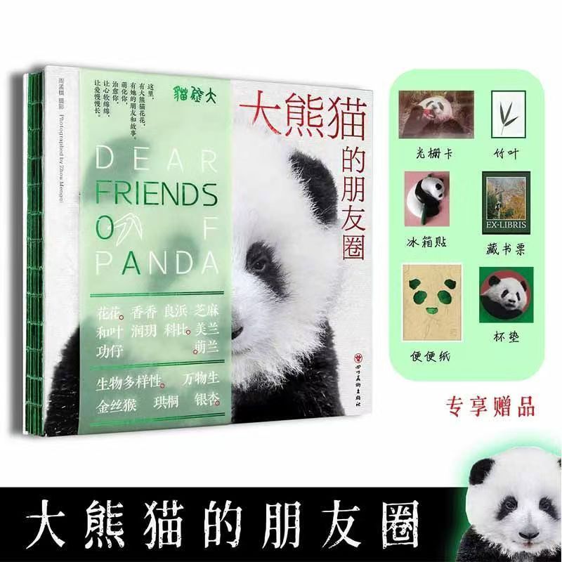 『ジャイアントパンダ 友の会』は、自然、歴史、文化を融合させた癒し系の分かりやすい科学写真集となっています。 ジャイアントパンダの習性や生活環境を「ストーリー性のある写真+軽快で生き生きとした文章」で紹介しています。 本は唐紙に印刷されたページもあり、パンダのダイナミックな水墨画がシンクロしています。 装丁のデザインは中国の伝統的なスタイルを採用し、東洋的な美的感覚を添えています。 本のタイトルは箔押しで押され、サイドには竹の節を模した背のデザイン、硫化紙を使った中国の竹の中式竹節縦封がデザインされています。 写真集のサイズは260mm×250 mmで、164ページで、中国有名なパンダカメラマン周 孟棋先生の10万枚写真作品中から120枚以上の可愛いパンダの写真を厳選し、シャンシャンと浜家良浜の写真も収録しており、パンダファンにとっては絶対見逃してはいけない逸品です。 可愛い特典一杯付の上に、うちの特別手配として更に下記3点付きです(カメラマン周先生のサイン付き、パンダ青団子再生紙、パンダカード、)。中国での販売価格は298人民元で、内での代行購入価格は13800円(税・日本迄送料代込)で、内のユーチューブ有料会員又はシャンシャンツアーご参加のお客様又は【熊猫シャンシャン】ご予約された方には15%OFFサービスで、11730円とさせて頂きます。収蔵値打ちもあるこの素敵な芸術品写真集はパン友に是非お勧めしたい一冊です!