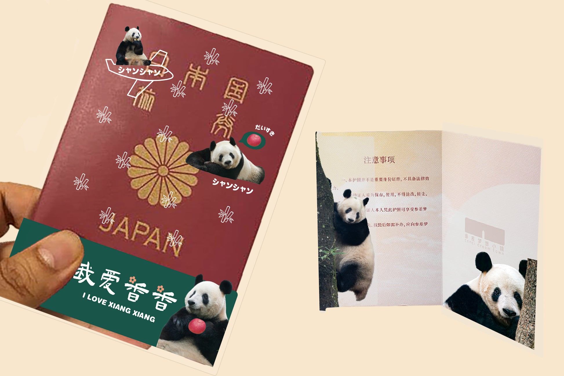表面と裏面には愛らしいシャンシャンの写真がプリントされています。