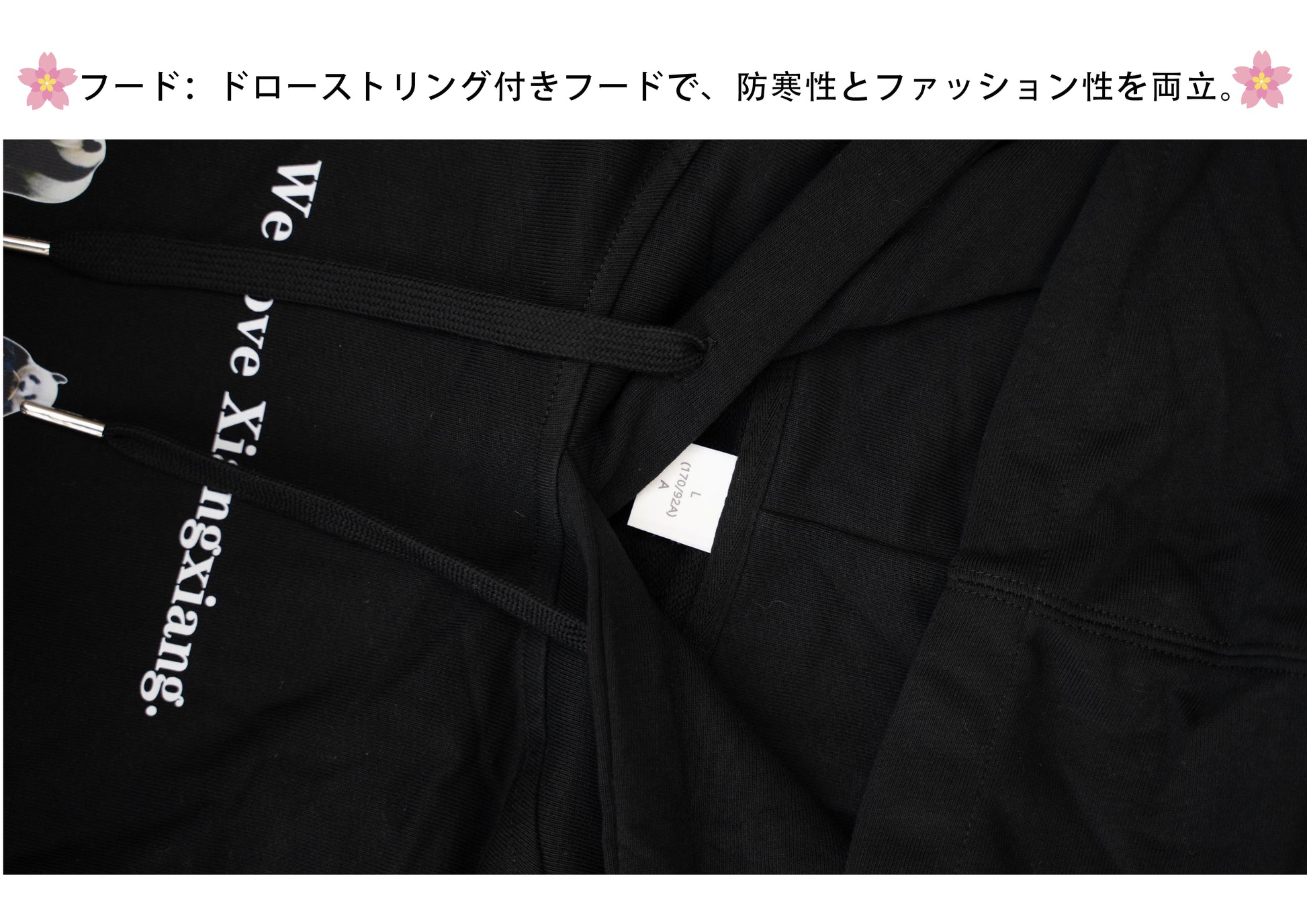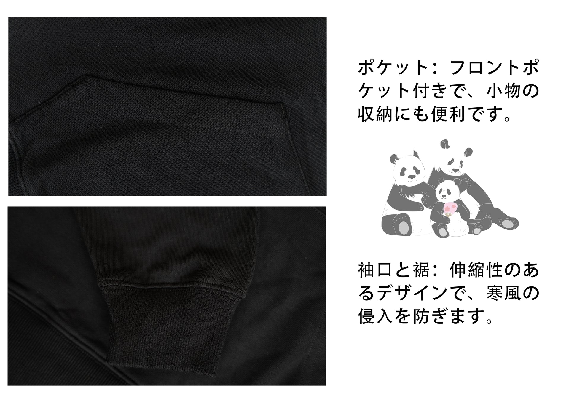 柄は前に ファスナーなし 薄手 パーカー九つのポーズのシャンシャン