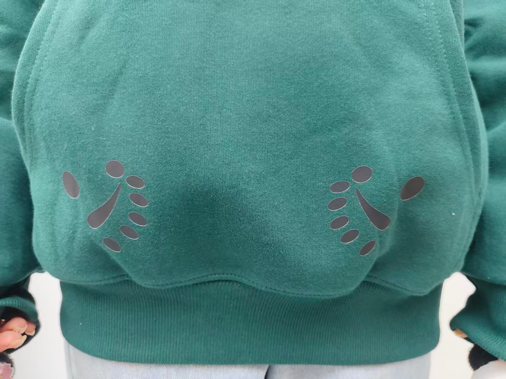 さらに、カンガルーポケット部分には小さなパンダの足跡がデザインされており、